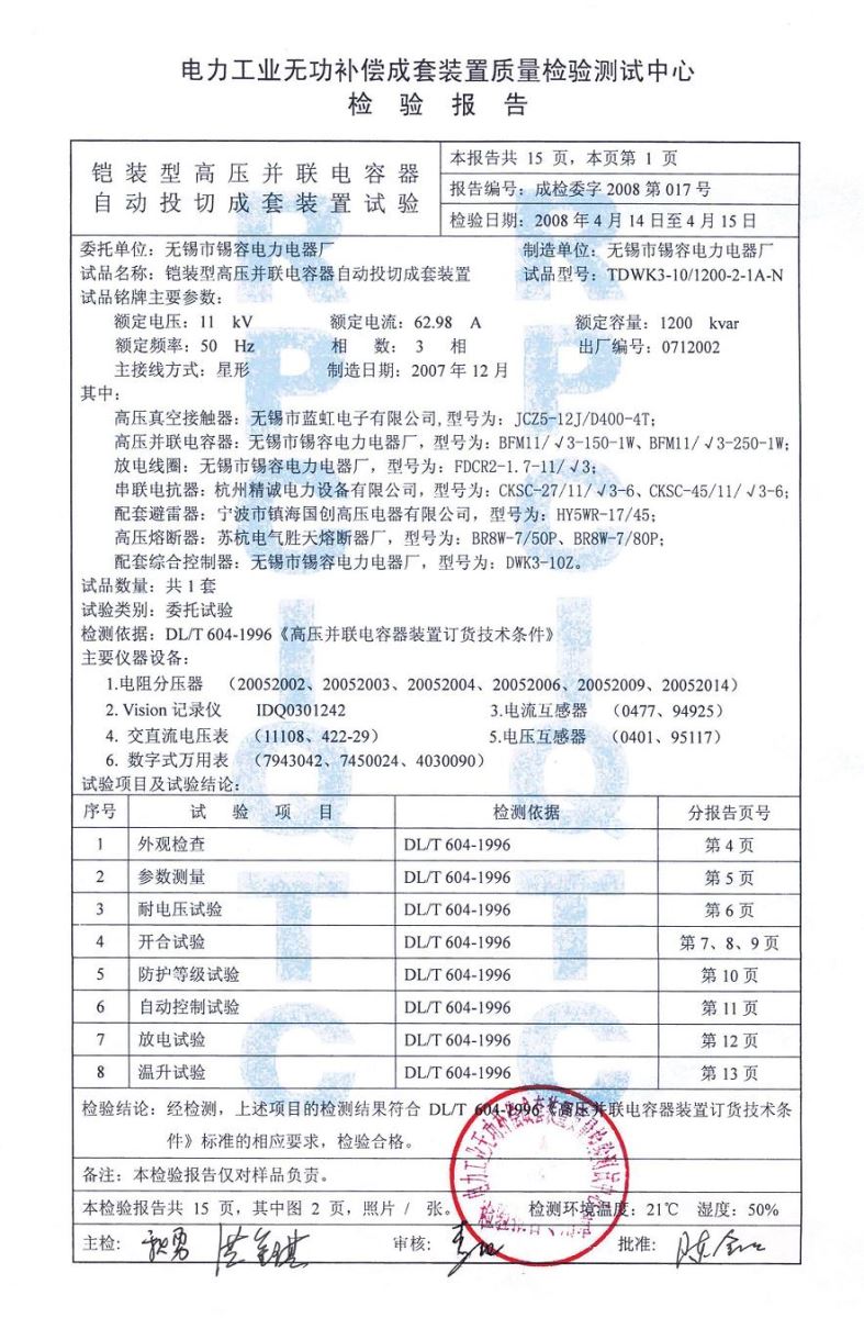 Test report release time:2020-07-20 04:06:13source:Wuxi Xirong Electric Appliance Co., Ltd.Click:1713