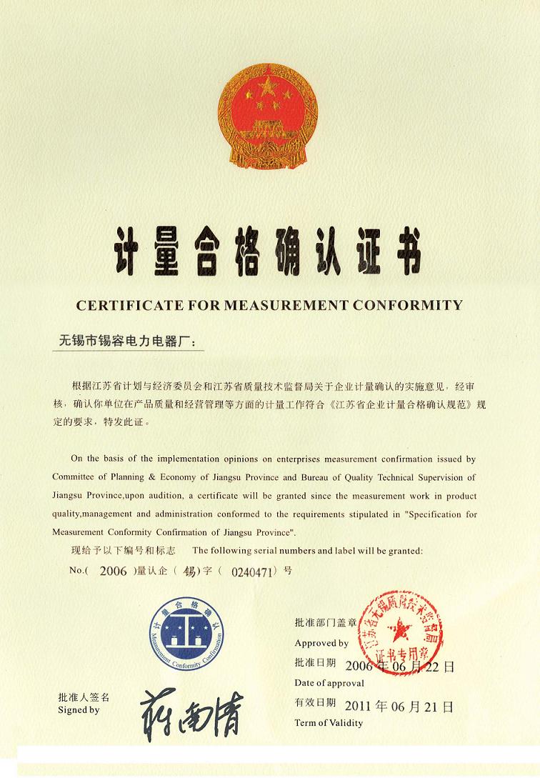 Measurement certificate release time:2020-07-20 04:19:06source:Wuxi Xirong Electric Appliance Co., Ltd.Click:1859